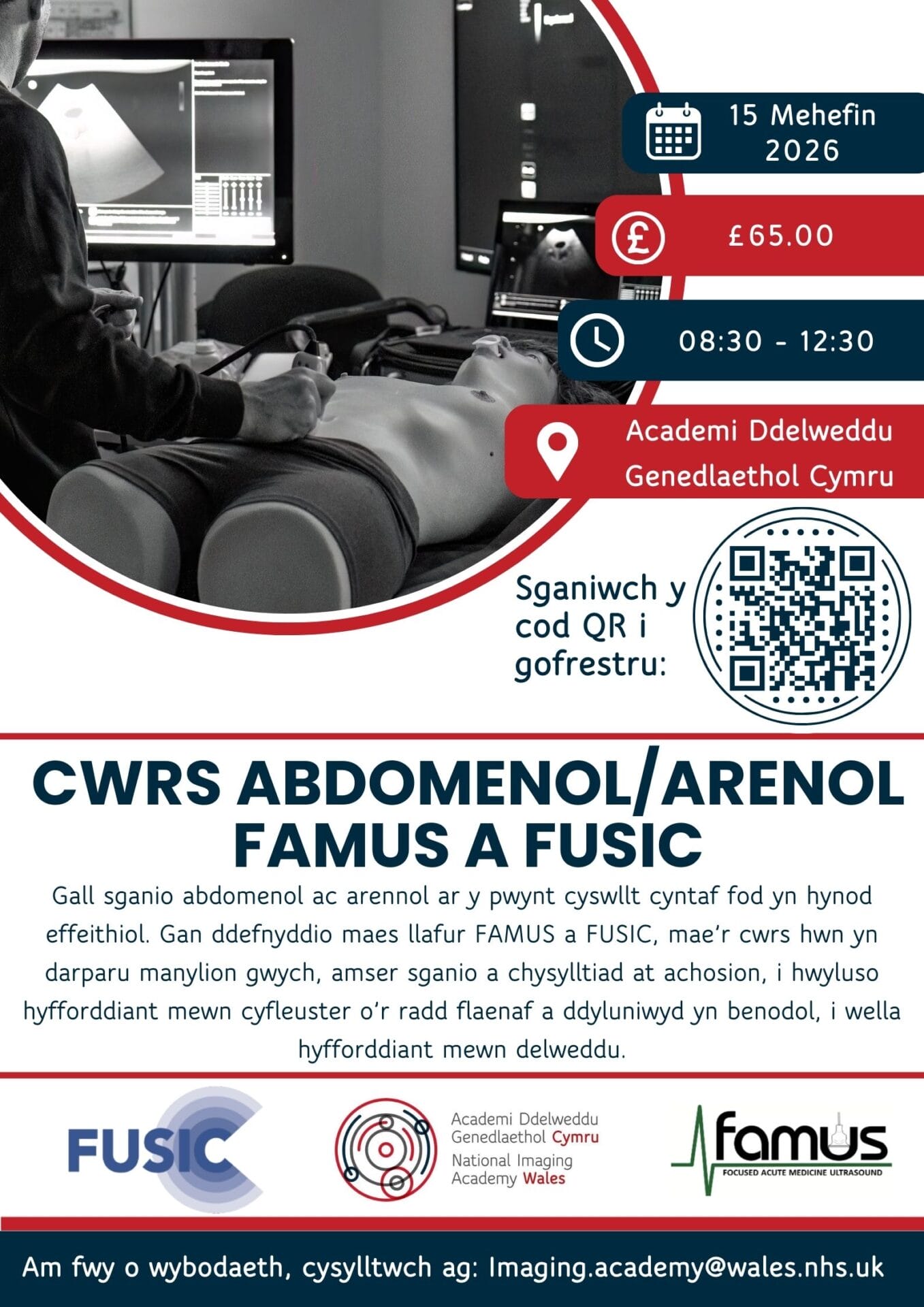 To book, scan QR code on poster, or register with this link and select FAMUS & FUSIC Abdominal/Renal Course (1/2 day)